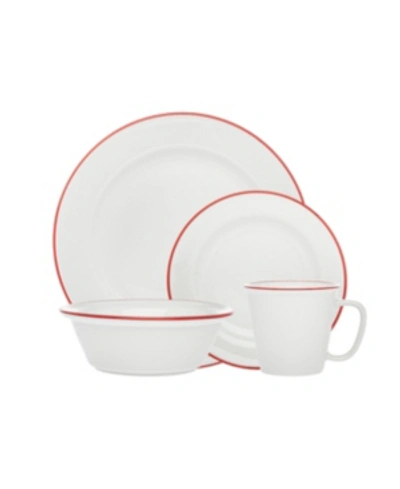 Bistro Red Band 16-pc Porcelain Dinnerware Set In White