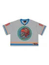 grey graphic print striped trim round neck short sleeves logo detail