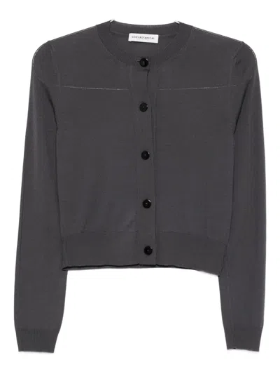 dark grey button front fastening cropped length long sleeves ribbed trims