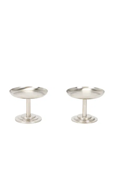 Gohar World Dessert Stems Set in Metallic Silver Polished stainless steel dessert stems. Dishwasher safe. Set of 2. Measures approx 2.75 W x 2.15 H. GOHF-WH9. INDS-SS. About the designer: