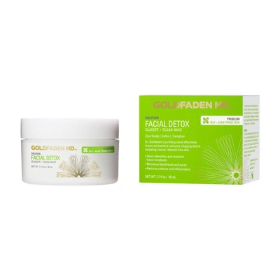 Goldfaden MD Facial Detox Pore Clarifying Mask. This Product Is:. a cleansing face mask. . Good for: c. ombination, oily and blemish prone skin. . Why We Love It:. Goldfaden M.D. Facial Detox Pore Clarifying Mask contains natural ingredients that go beyond targeting existing problem areas, but works to improve the look of overall complexion. Facial Detox is a toxic-free, advanced purifying mask which employs the soothing benefits of Zinc Oxide, Sulfur and Camphor to deep clean congested skin. These ingredients may also minimize the appearance of pores, soothe the skin, and improve the appearance of uneven skin tone. Developed to use as an overall facial mask, this powerhouse formula works to unveil a clearer looking, radiant even-toned complexion..