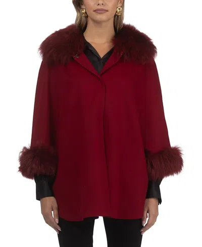 Select Wool Cape With Select Lamb Collar And Cuffs In Brown