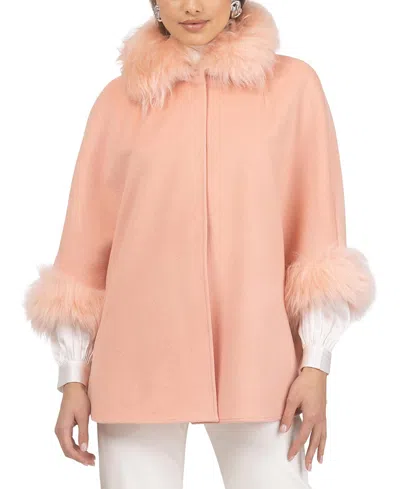 Select Wool Cape With Select Lamb Collar And Cuffs In Pink