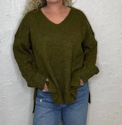 Wear this v-neck sweater with your favorite denim for the perfect fall look.Elevate your casual ensemble with the Dark Moss Sweater by GRADE & GATHER, crafted in a minimalist solid green. This women's long sleeve sweater features a relaxed, flowing fit with a stylish V-neckline and strategic side slits for added movement. Made for effortless layering, it's designed with a convenient pull-on closure and is perfect for a variety of occasions, including holiday parties in the fall season. Embrace the cozy yet chic appeal of this versatile piece.