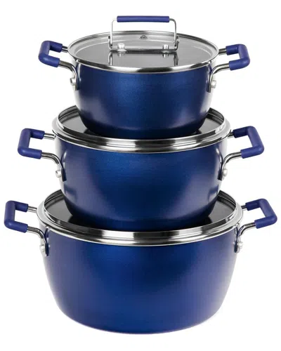 6pc Nonstick Stackable Nesting Pots In Blue