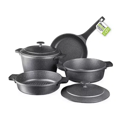 Nonstick coating - cooking surface is double layer nonstick with titanium and diamond sparkle look coating to deliver ultimate food releaseSelf-basting condensation - underside of lid enables constant basting throughout cooking process to evenly collect and direct vapors onto food, never have to worry about drying up your roast chicken or other foods.Stovetop safe: each piece of cookware is compatible with all types of stovetops - gas, electric, halogen, ceramic and induction.Oven safe: up to 500° F on the dutch oven, braiser pan and grill pan (please note to remove silicone handle covers beforehand), fry pan is not oven safe.Set includes: 5 qt. dutch oven with lid and 2-silicone handle covers, 3.3 qt. braiser pan with lid and 2-silicone handle covers, 2.5 qt. grill pan with 2-silicone handle covers, 9.75 in. skilletEffortless cleanup, dishwasher safe - spend less time with cleanup, after all cooking and prepping is done, place cookware in dishwasher for quick and easy cleanup.Healthy and non-toxic - granitestone coating is made without added pfoa and pfos# Pieces In Set: 6Included: 1 5 Qt. Dutch Oven(s) With Lid(s), 1 3.2 Qt. Braising Pan(s) With Lid(s)Features: Non-Stick, Oven Safe, Scratch Resistant, Dishwasher SafeCooktop Compatibility: Gas, Electric, CeramicRecommended Utensil Material: Metal, SiliconeMaximum Temp (f): 500 Degrees FCare: Dishwasher Safe, Hand WashDecor Styles: ContemporaryMaterial: AluminumCountry of Origin: Imported