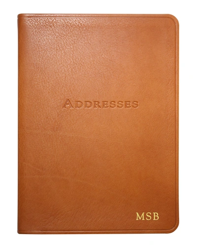 A unique address book loaded with helpful information. This sleek and lightweight bound address book is ideal for home or office. Includes A to Z tabs and full-color maps of U.S. and major international cities. Special features include a birthday/anniversary record and a perpetual calendar. Can be personalized with up to three characters. Smyth-sewn for strength and longevity. Acid-free paper with gilt edges. Leather cover. 224 pages. Approx. 5.3" x 7.3". Made in the USA of imported materials.