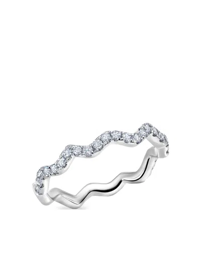 18K white gold prong-set round-cut G-H white diamonds totalling 0.50 carats wavy design polished finish stackable style
