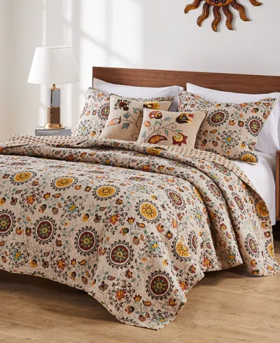 GREENLAND HOME FASHIONS Andorra Cotton Reversible 4 Piece Quilt Set, Twin/twin Xl In Taupe