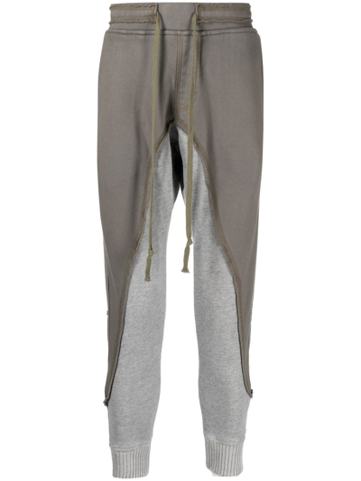 patchwork drawstring trousers from GREG LAUREN featuring cotton, two-tone design, patchwork design, drawstring fastening waist, tapered leg and army green. Conscious: This product exceeds regulatory requirements. Its formulation also avoids ingredients that are identified by independent experts for potentially having a negative impact on the planet..