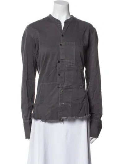 Greg Lauren Utility Jacket Blue Collarless Button Closure Size not listed, estimated from measurements. Fit: Jackets by Greg Lauren typically fit true to size. | Greg Lauren Utility Jacket in Blue, Women's M