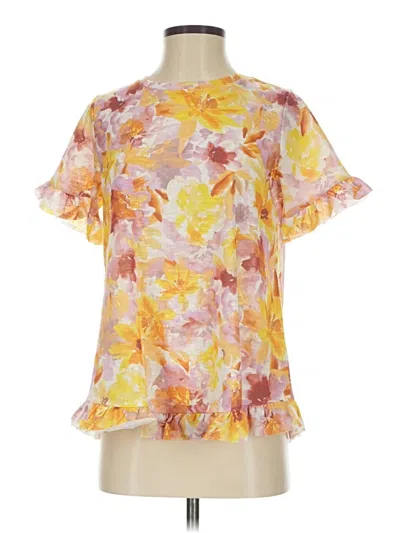 Greige Short Sleeve Blouse, Size: Small. Item Details: Yellow, Ruffles Neckline, Women's Tops