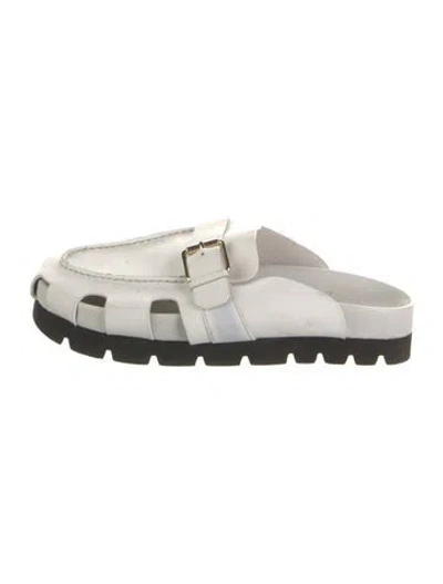 Grenson Leather Mules White Colorblock Pattern Semi-Pointed Toes with Cutout Accent Platform Buckle Closure At Uppers Unfortunately, due to restrictions, this item may not be eligible for shipping in all areas. | Grenson Leather Colorblock Pattern Mules in White, Women's 8