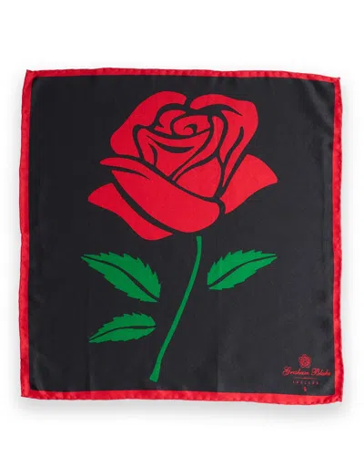 GRESHAM BLAKE Men's Black / Red Black Rose Pocket Square In Multi