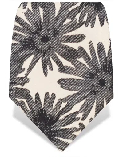 Silk tie with an all over woven design of black daisies. Tipped in plain black. Dry clean only undefined 100%