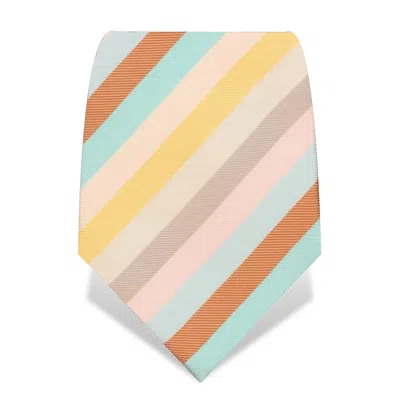 A simple yet vibrant Gresham Blake Tie with diagonal candy stripes. Tie has an embroidered Gresham Blake logo and black lining which features the Grehsam Blake emblem. Ideal for adding a splash of colour to any outfit. 100% silk. Hand Made. 150cm X 8cm. Dry clean only. undefined 100%