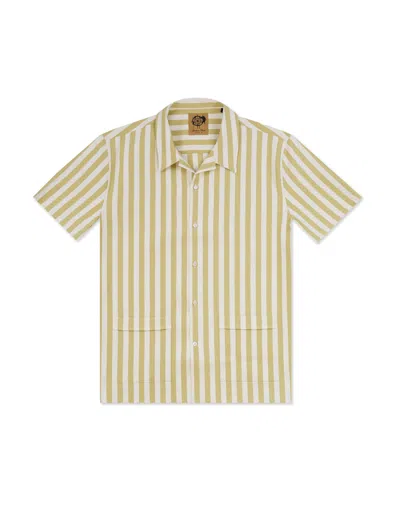 GRESHAM BLAKE Men's Neutrals Ecru Stripe Bowling Shirt