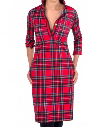The pefect long sleeve dress for those cooler months.The Gretchen Scott Everywhere jeresy dress in the Duke of York plaid is perfect for any holiday occasion! The dress is 36" in length, 3/4 Sleeves with Optional Coordinating Turn Back Cuffs and a versatile 4" Hand Hem.Styled up with 1.5" Racer Stripes on Side Seams/ Front Placket and Inside Collar. Accented with Shiny Gold Buttons and Coordinating Fabric on Inside Back panelMachine wash cold gentle cycle. Hang Dry.