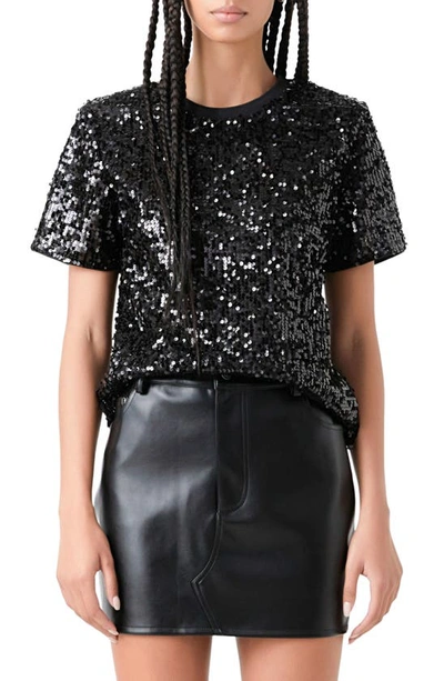 GREY LAB Shoulder Pad Sequin Top In Black