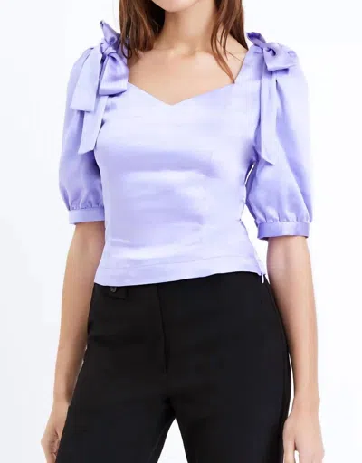 A versatile blouse that works from desk to dinner!Crafted in a dreamy lilac hue. Exudes sophistication with its unique tie shoulder detail and playful puff sleeves. Modern yet timeless statement piece. Soft, breathable polyester fabric ensures comfort while maintaining style. Featuring a classic V-neckline and a chic, solid pattern. Crafted to perfection. Hand wash in cold water. Lay flat to dry. Low iron.