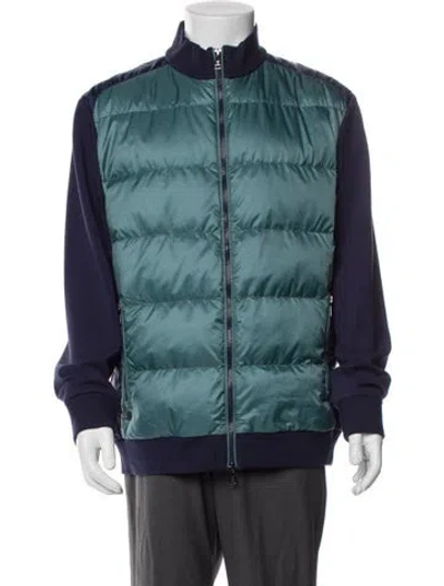 Greyson Puffer Coat Blue Colorblock Pattern Satin Lining Collar Zip Pockets Fit: Outerwear by Greyson typically fit true to size. | Greyson Colorblock Pattern Puffer Coat in Blue, Men's L