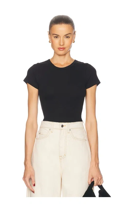 GRLFRND Baby Tee in Black - Black. Size XS (also in L, M, S, XL, XXS). 67% TENCEL ™ lyocell 28% cotton 5% spandex. Made in USA. Machine wash. Pull-on styling. Ribbed neckline trim. Lightweight jersey fabric. GRLR-WS127. GRS246 S25. About the designer: Introducing your new GRLFRND. Based in LA, GRLFRND Denim crafts pieces focused on fit and individuality, blending unique details with vintage silhouettes. The premium denim label reimagines everyday staples with a contemporary vision, drawing inspiration from enduring styles and comfort. Bold, versatile, and unexpected - a fresh approach to classic denim. Explore the collection featuring remarkable ready-to-wear pieces designed with premium qualities and directional silhouettes to perfectly complement the denim