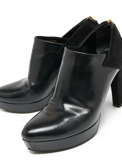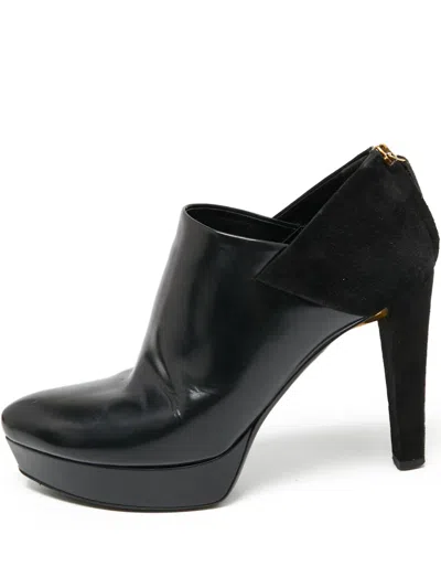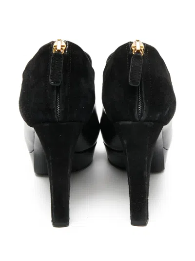 black leather suede panelling high heel platform sole pointed toe zip fastening at the back Condition: GOOD. This previously owned and used item is in good condition with minimal signs of use. This may include fading of material or plating and scratches.