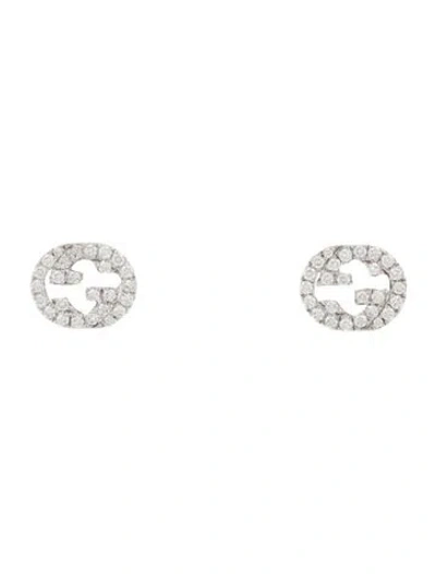 Rhodium-Plated 18K White Gold & Palladium-Plated Includes Designer Box | Gucci 18K Diamond Interlocking G Stud Earrings