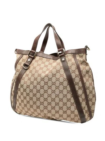 Pre-owned 2000-2015 Gg Canvas Abbey D Ring Convertible Satchel In Brown