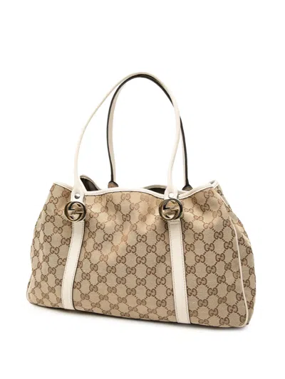 Pre-owned 2000-2015 Gg Canvas Twins Tote Bag In Brown