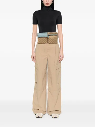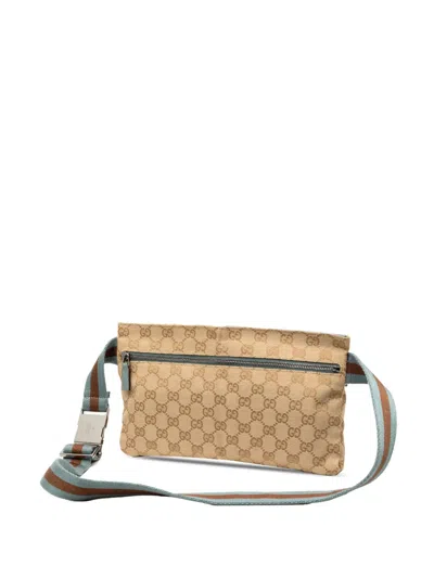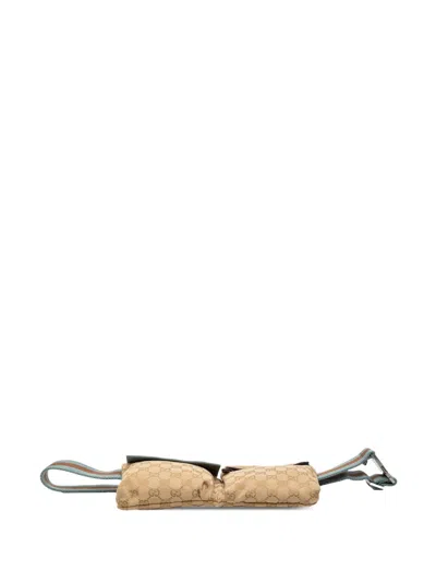 Pre-owned 2000-2015 Gg Canvas Web Double Pocket Belt Bag In Brown