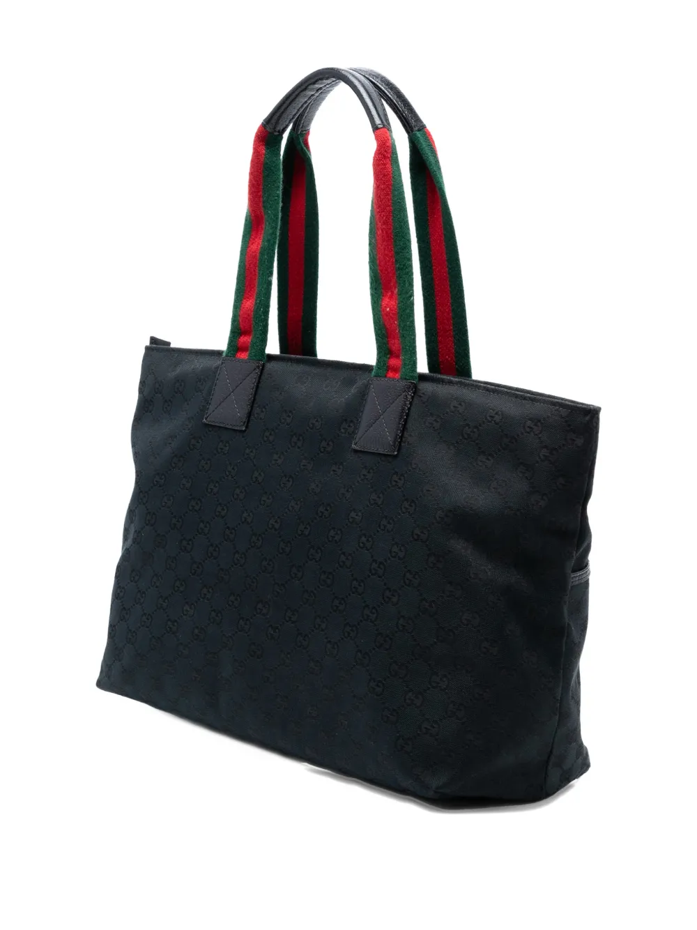 Pre-owned 2000-2015 Gg Canvas Web Tote Bag In Black