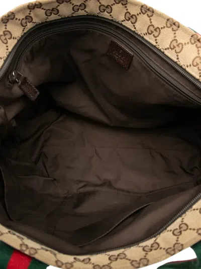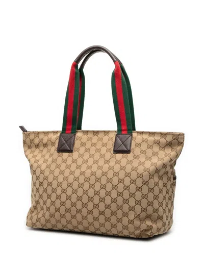 Pre-owned 2000-2015 Gg Canvas Web Tote Bag In Brown