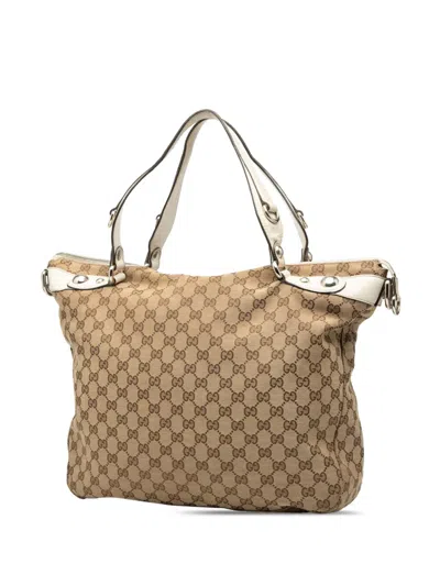 Pre-owned 2000-2015 Large Gg Canvas Icon Bit Satchel In Brown
