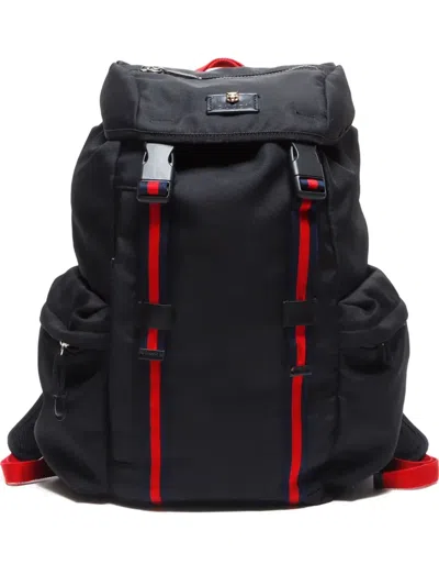 Pre-owned 2000-2020 Web-stripe Canvas Backpack In Black