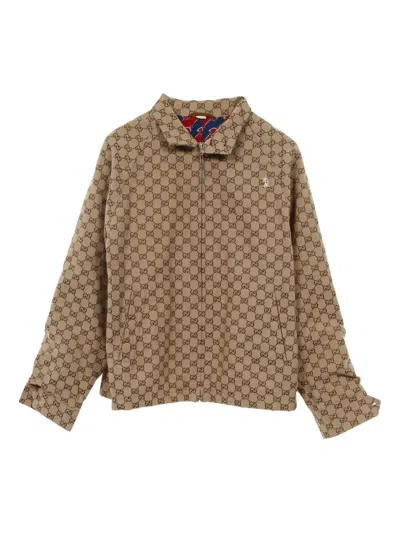2010s beige GG jacquard pattern zip fastening embroidered detail long sleeves