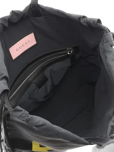 black and yellow embossed logo top handle internal zip-pocket drawstring Condition: EXCELLENT. This previously owned item is in near-perfect condition with no signs of damage or use.