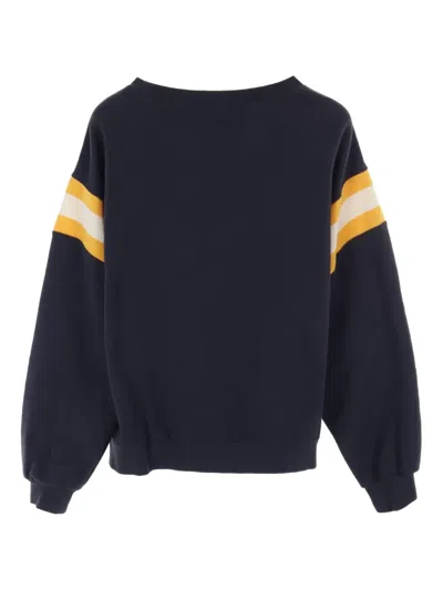 circa 2010s navy blue cotton jersey texture crew neck drop shoulder stripe detailing long sleeves ribbed cuffs and hem logo print at the chest teddy bear print Condition: EXCELLENT. This previously owned item is in near-perfect condition with no signs of damage or use.