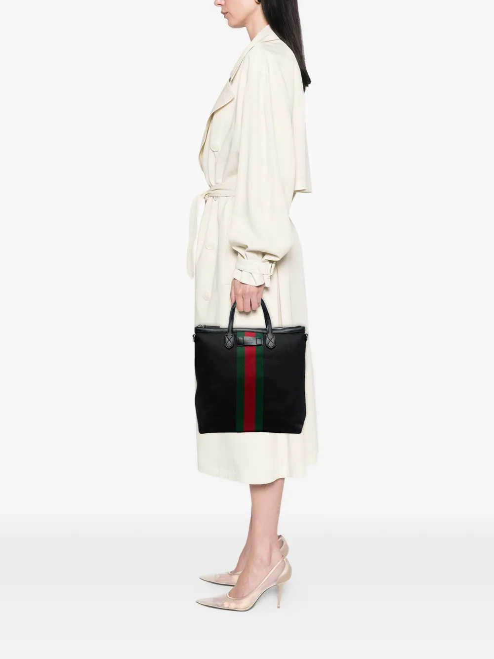 Pre-owned 2016-2025 Canvas Techno Web Vertical Zip Tote Satchel In Black