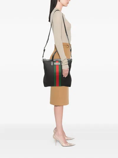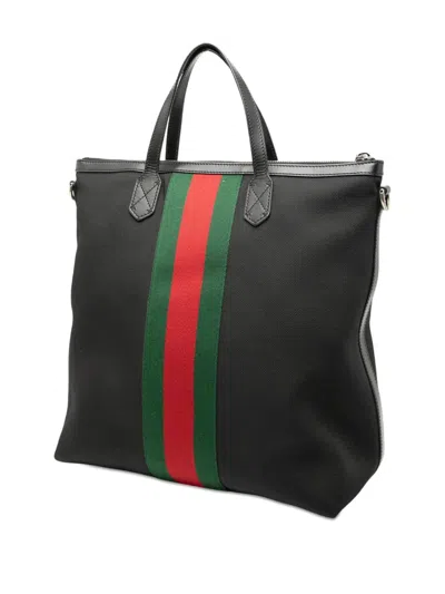 Pre-owned 2016-2025 Canvas Techno Web Vertical Zip Tote Satchel In Black