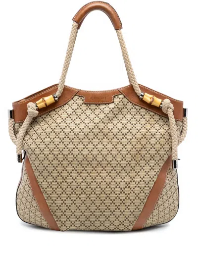 Pre-owned 2016-2025 Diamante Canvas Maui Hobo Bag In Brown