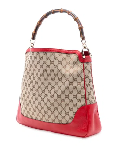 Pre-owned 2016-2025 Gg Canvas Bamboo Diana Satchel In Brown
