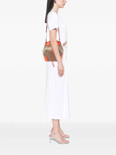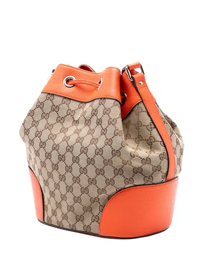 Pre-owned 2016-2025 Gg Canvas Drawstring Bucket Bag In Brown