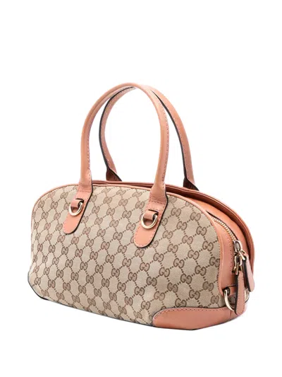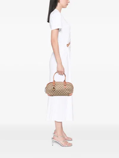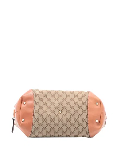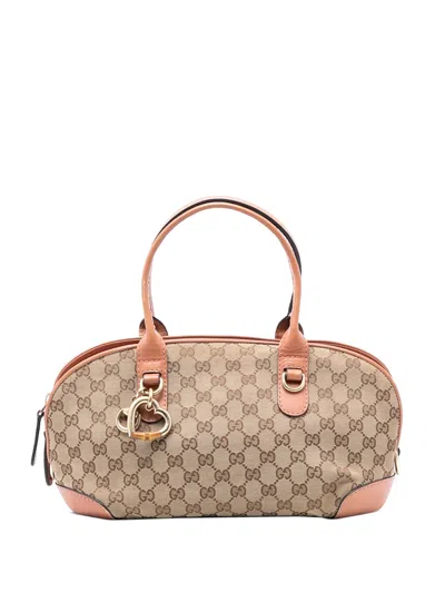 Pre-owned 2016-2025 Gg Canvas Heart Bit Satchel In Brown