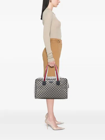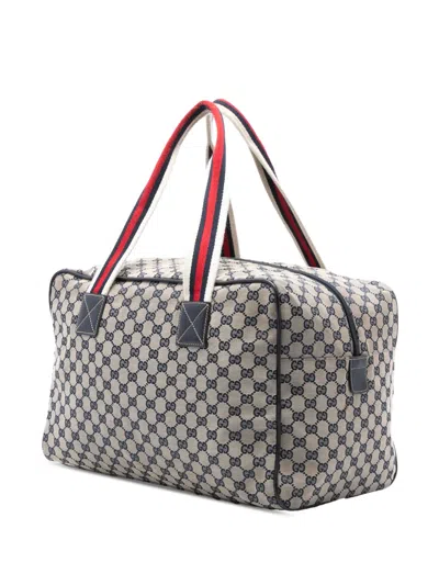 Pre-owned 2016-2025 Gg Canvas Web Travel Bag In Gray
