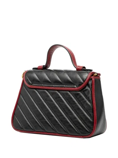 Pre-owned 2016-2025 Gg Marmont Matelasse Leather Torchon Top Handle Bag Satchel In Black