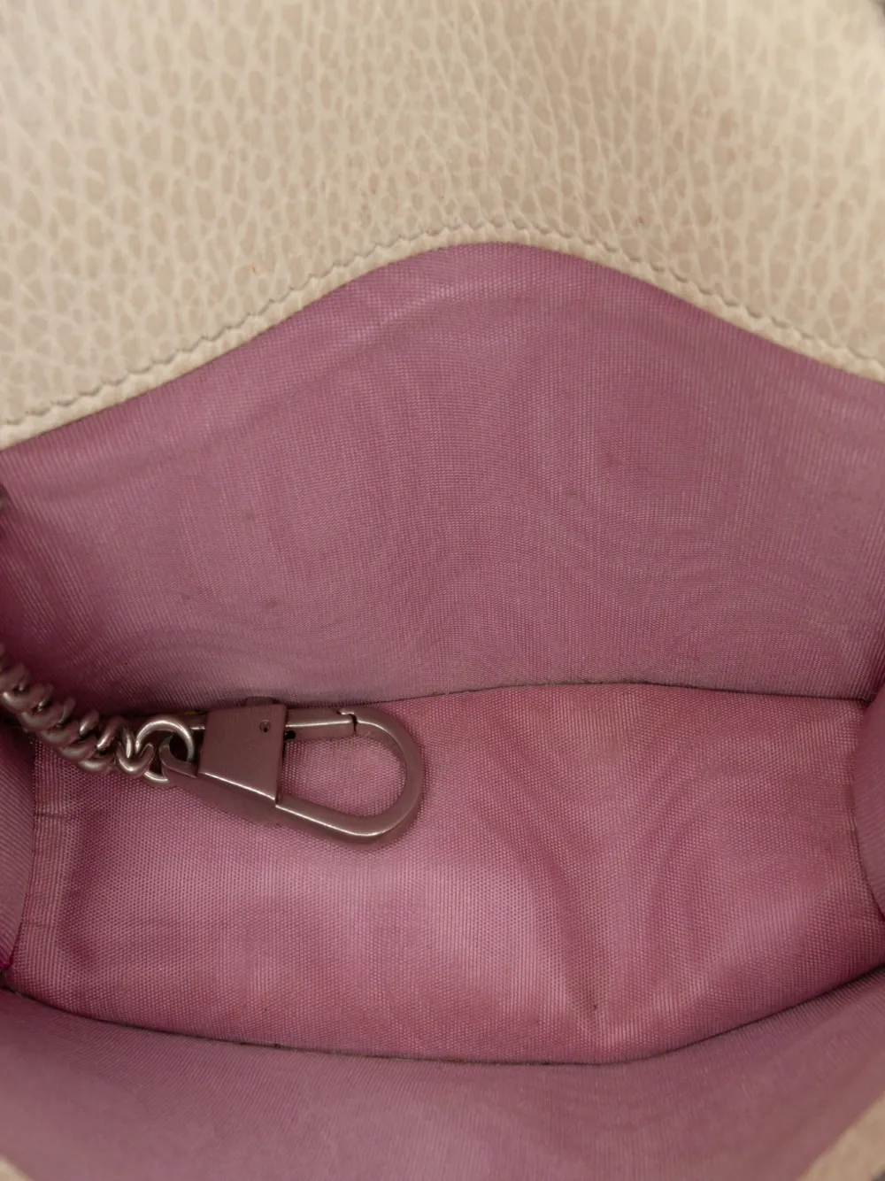 This crossbody bag features a leather body, a chain shoulder strap, and a flap with snap closure. White. Serial Number: 476432·525040. Inclusions: charm. Condition: GOOD. This previously owned and used item is in good condition with minimal signs of use. This may include fading of material or plating and scratches. Declared Damages: Interior Lining Feature(s) Minor Loose Stitching. Exterior Side Feature(s) Minor Loose Stitching. Please refer to the photos on this product page for a detailed view of the item, including any damages declared.