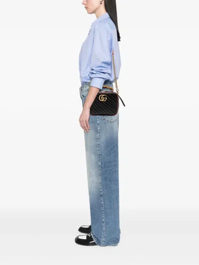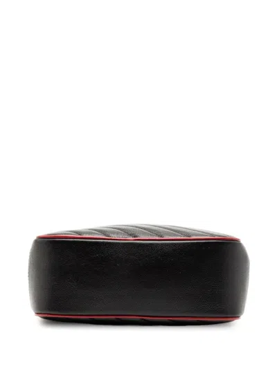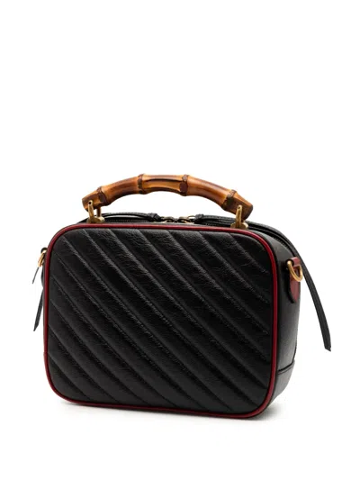 Pre-owned 2016-2025 Small Gg Marmont Matelasse Diagonal Leather Torchon Bamboo Satchel In Black