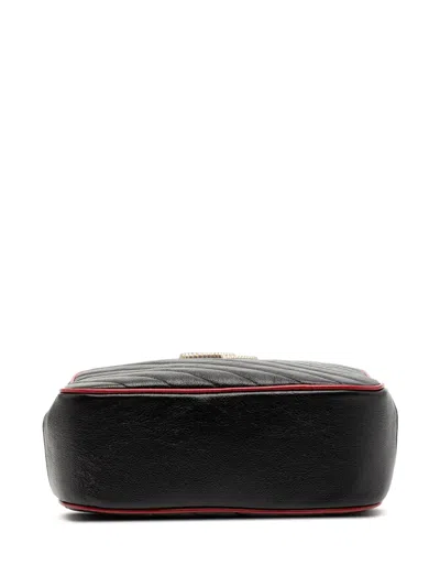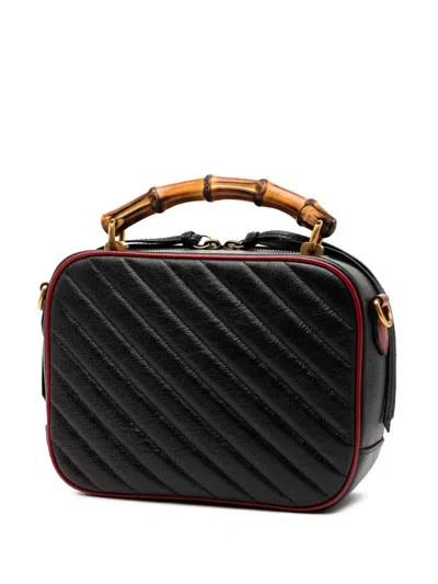 Pre-owned 2016-2025 Small Gg Marmont Matelasse Diagonal Leather Torchon Bamboo Satchel In Black