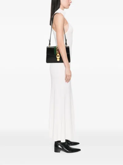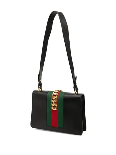 Pre-owned 2016-2025 Small Leather Web Sylvie Satchel In Black